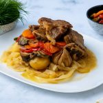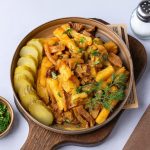 Курица с грибами в сметанно-сырном соусе (тушёная)
