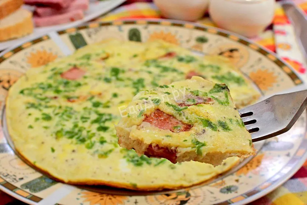 Пока еще яичная болтушка жидковатая, сразу посыпаем ее мелко нарезанной зеленью. Берем то, что есть под рукой или используем замороженную зелень петрушки, укропа, сельдерея. Плотно накрываем крышкой и готовим до нужной консистенции – если полностью прожариваем яйца, то 6-7 минут, если оставляем жидковатыми, сочными – 4-5 минут.