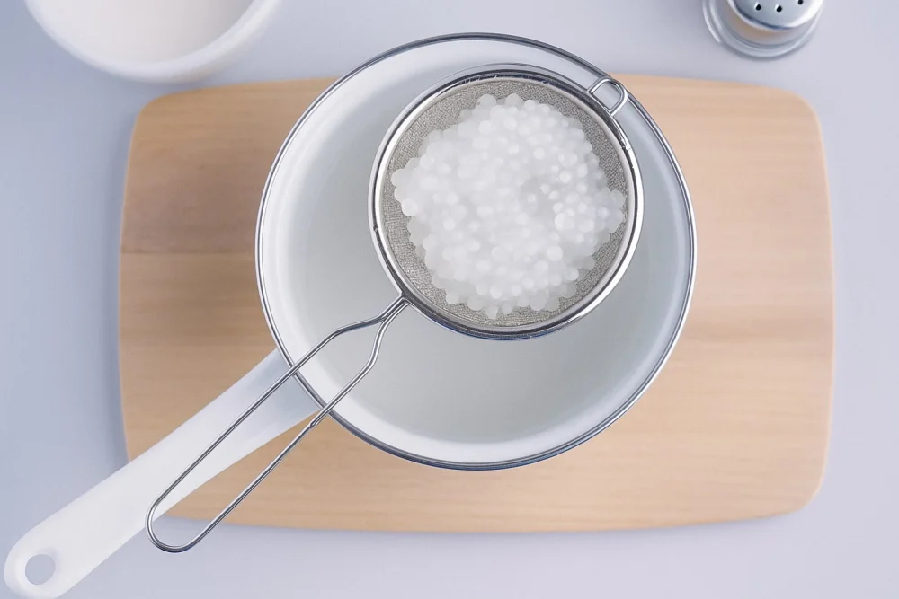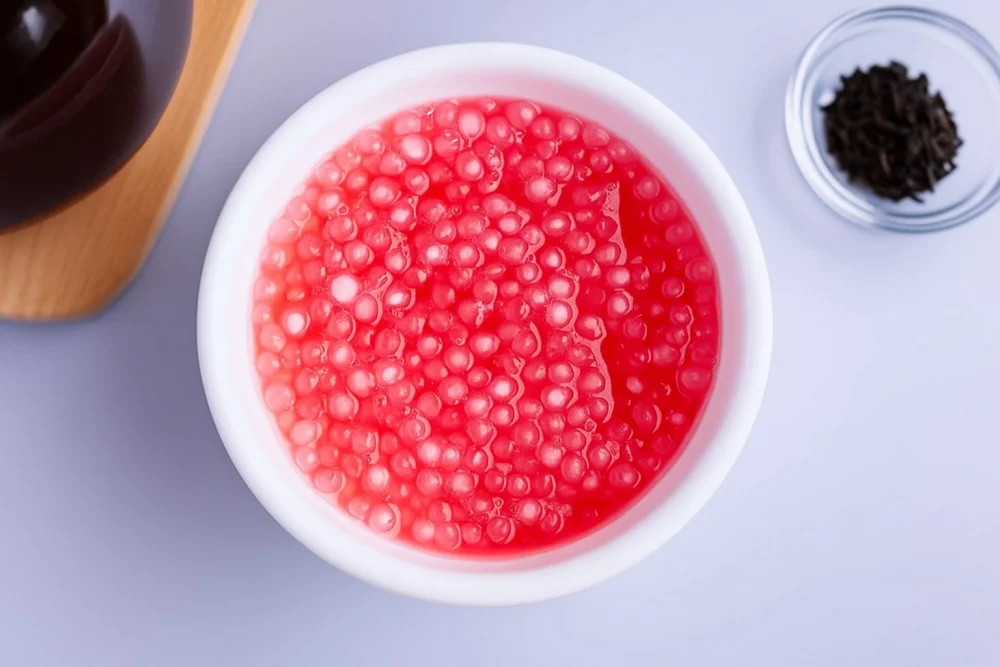 Шарики тапиоки — визитная карточка бабл ти и источник его уникального вкуса и текстуры. Для их приготовления налейте в сотейник достаточное количество воды и доведите её до кипения на среднем огне. Аккуратно всыпьте шарики тапиоки, убавьте огонь и варите примерно 40 минут, регулярно помешивая, чтобы они не слиплись и не пригорели.