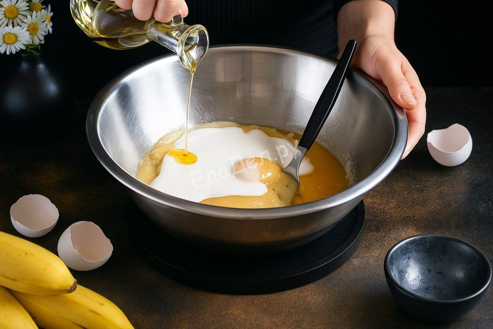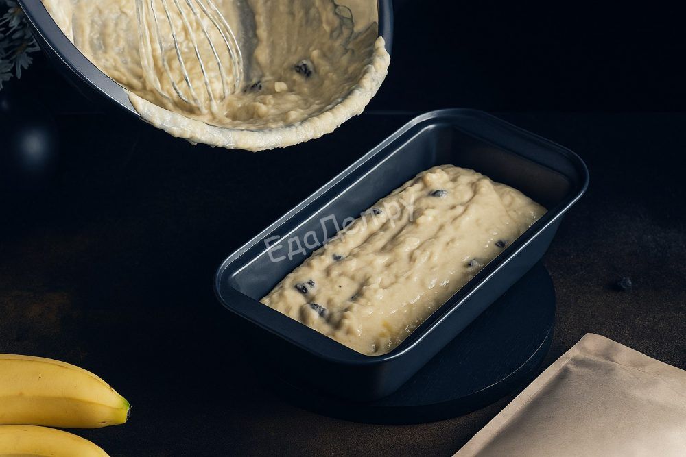 Вылейте тесто в прямоугольную форму для выпечки, заранее смазанную маслом или застеленную бумагой для выпечки. Выпекайте в разогретой до 190°C духовке 50–55 минут, проверяя степень готовности деревянной шпажкой — она должна выходить сухой. Если верх начнёт слишком быстро подрумяниваться, накройте форму фольгой до конца выпекания.