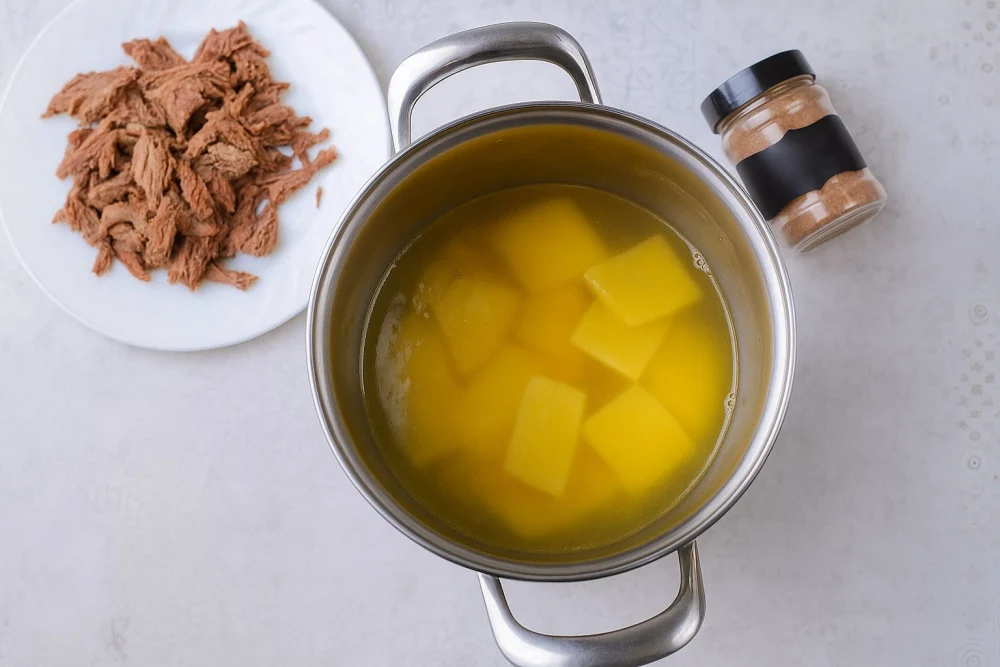 Для начала приготовьте домашнюю лапшу: всыпьте просеянную муку с солью в большую миску, вбейте 2 яйца и влейте 200 мл воды. Замешивайте тесто, пока оно не станет упругим и эластичным. Не жалейте времени на вымешивание, можно добавить ещё немного муки, чтобы тесто перестало липнуть к рукам и стало тугим.