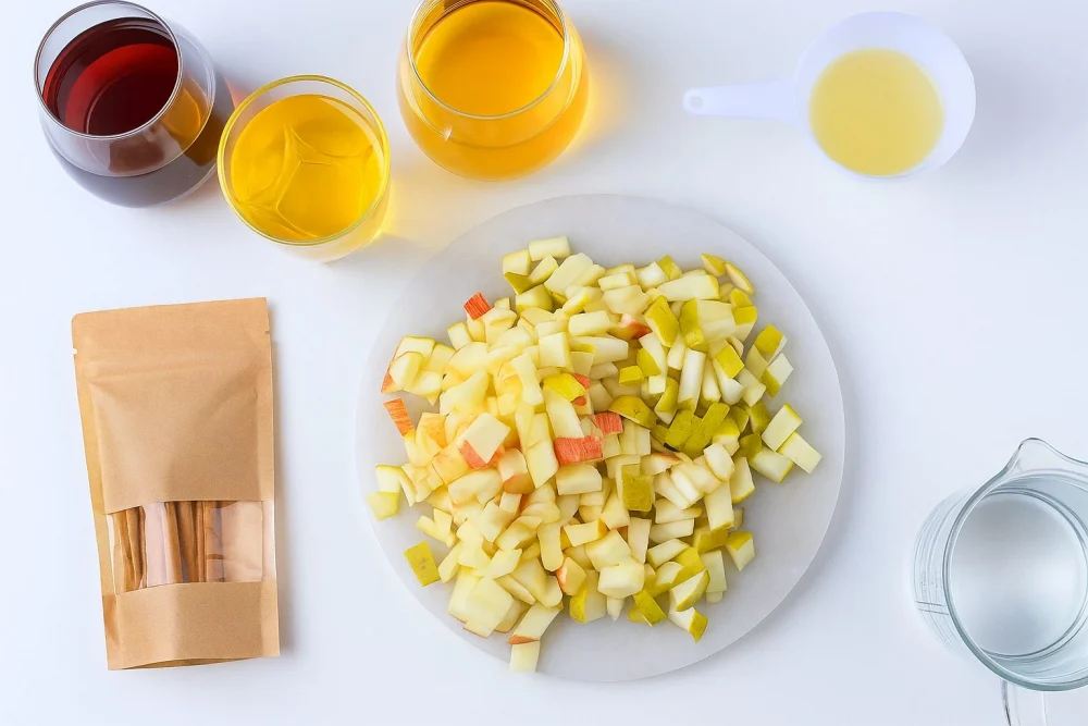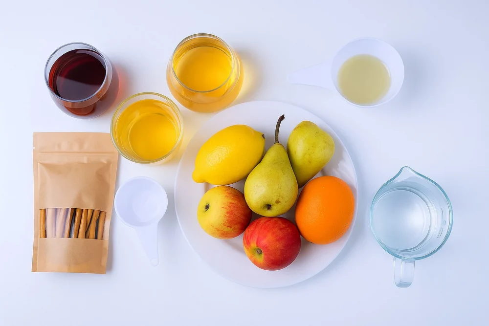 Выложите нарезанные яблоки, груши, апельсин и лимон в большой стеклянный кувшин. Влейте виноградный, гранатовый и яблочный соки. Оставшийся лимон разрежьте пополам, выжмите из него сок прямо в кувшин. Для насыщенного вкуса и аромата уберите напиток в холодильник минимум на 3 часа, а если есть время, оставьте на ночь.
