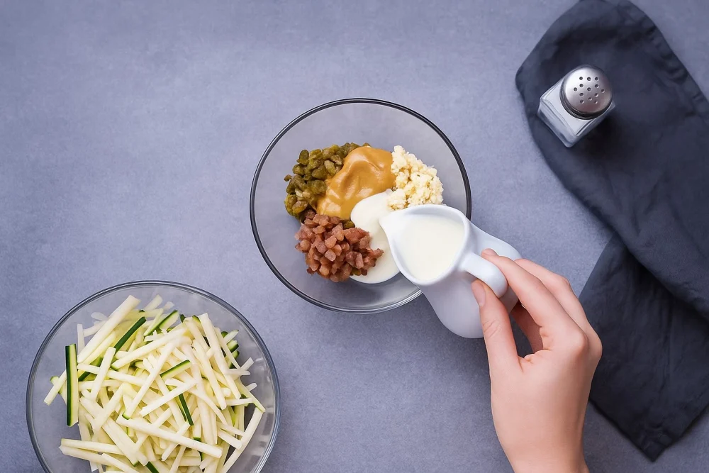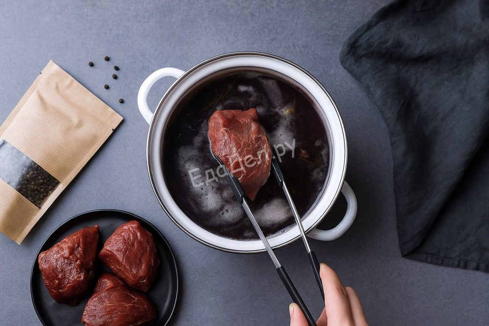 Погрузите бифштексы в кипящий бульон. Следите, чтобы мясо полностью покрывалось жидкостью; при необходимости влейте кипяток. В зависимости от желаемой прожарки варите от 6 до 10 минут. Переложите бифштексы щипцами на тарелку и накройте фольгой, чтобы они остались сочными. Соус ремулад попробуйте, при необходимости добавьте соль и перец, капните лимонного сока и разложите по пиалам.