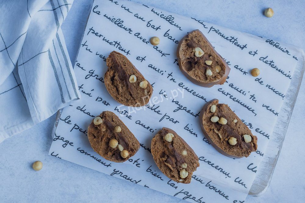 Выпекайте батоны в предварительно разогретой до 175°C духовке 15–20 минут, пока они не схватятся. Достаньте противень и дайте батонам постоять 5 минут для легкой нарезки. Нарежьте их ломтиками толщиной примерно 1 см, разложите снова на противне срезом вверх и отправьте в духовку ещё на 20 минут — так бискотти станут по-настоящему хрустящими.