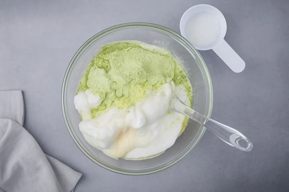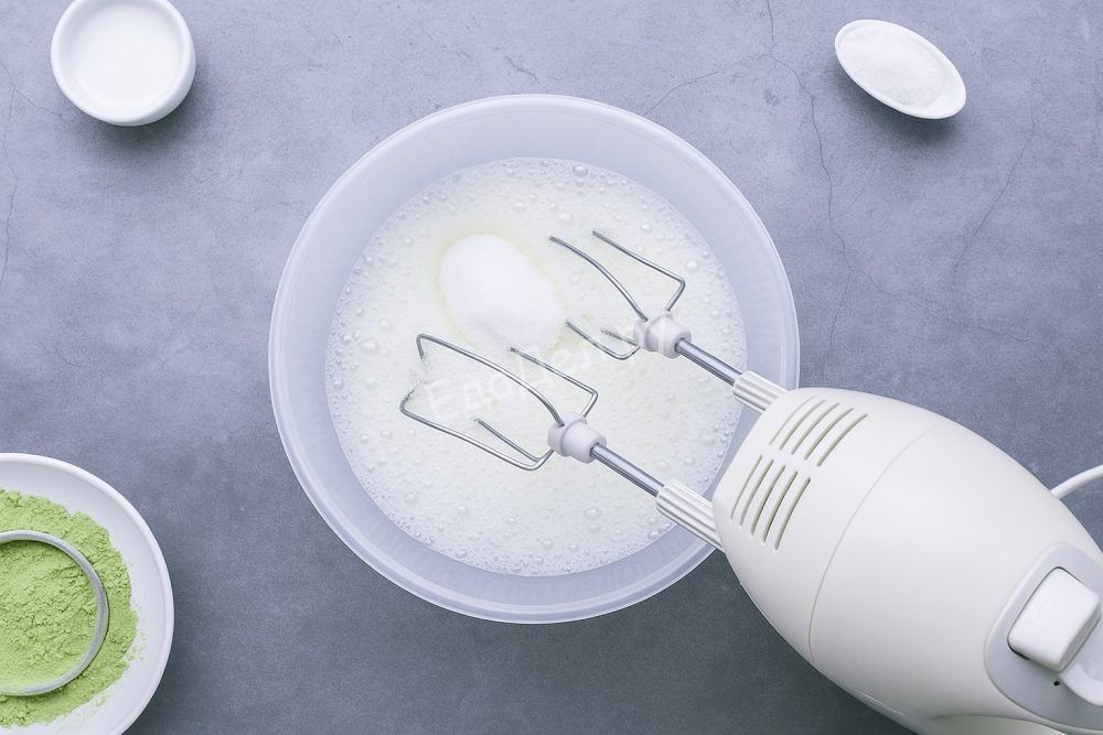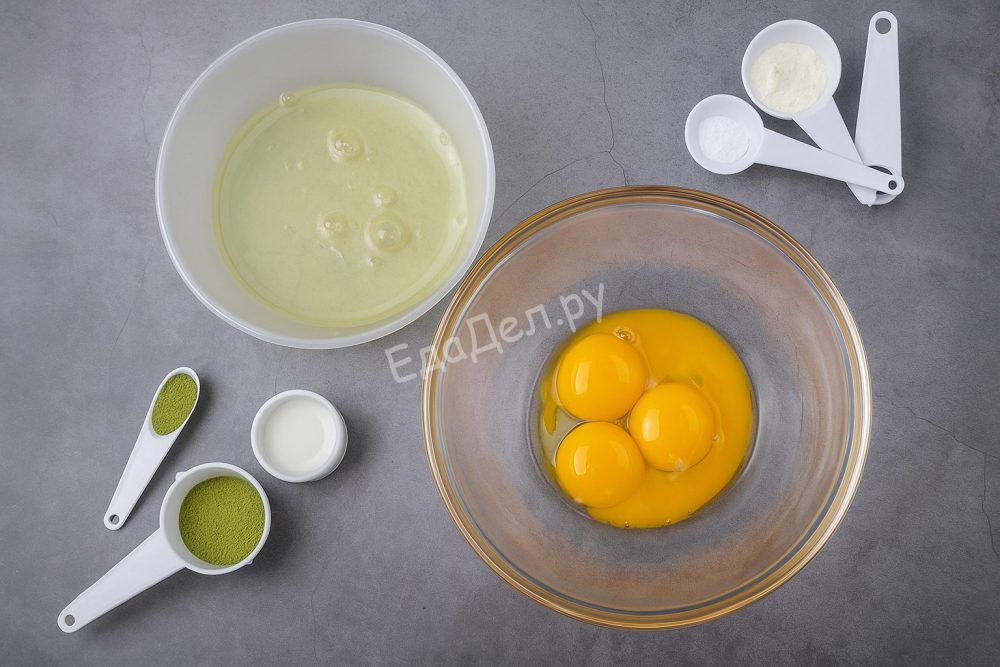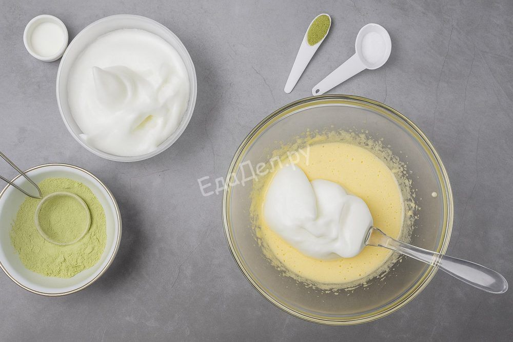 Охлаждённые белки взбейте миксером до образования пышной пены. Постепенно добавляйте сахар, продолжая взбивать, пока белки не станут плотными и глянцевыми. Добавьте треть белковой массы в желтки, аккуратно перемешайте, а затем соедините оставшиеся белки с этой смесью — вмешивайте осторожно, чтобы сохранить максимальную лёгкость.