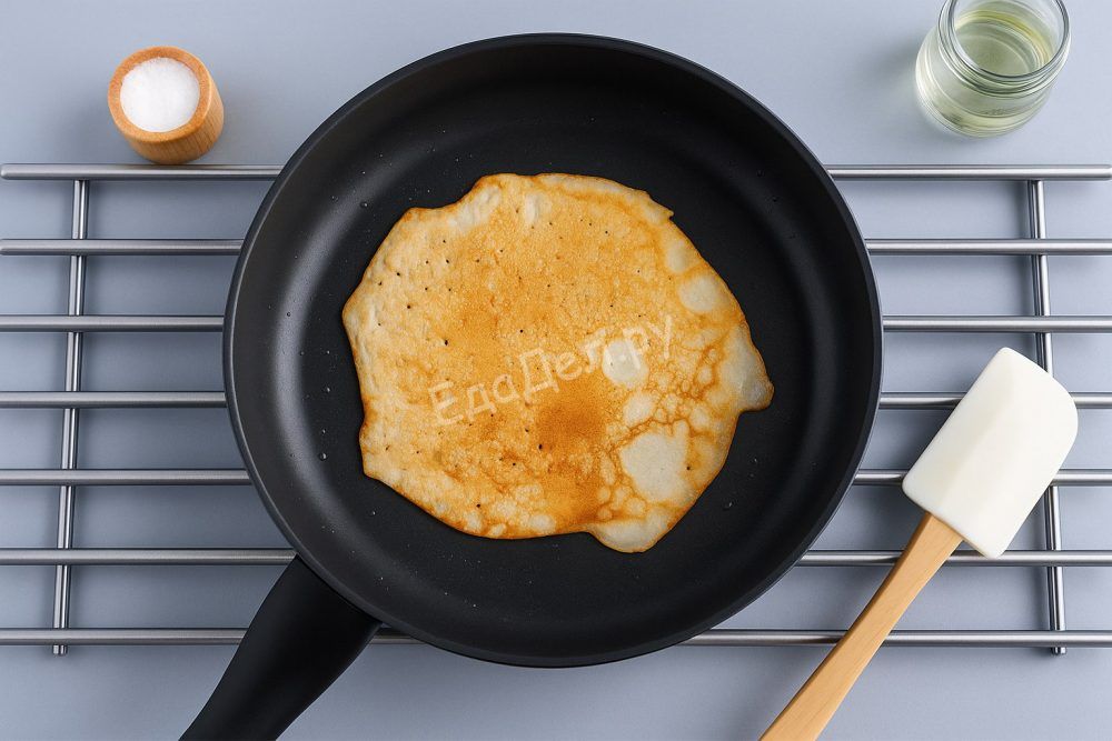 Разогрейте сковороду и слегка смажьте её растительным маслом. Используйте половник, чтобы отмерять порции теста — так блины будут одного размера. Жарьте блины до золотистой корочки с обеих сторон, периодически смазывайте сковороду маслом, чтобы избежать прилипания. Складывайте готовые блины стопкой — они останутся мягкими и ароматными. Приятного аппетита!