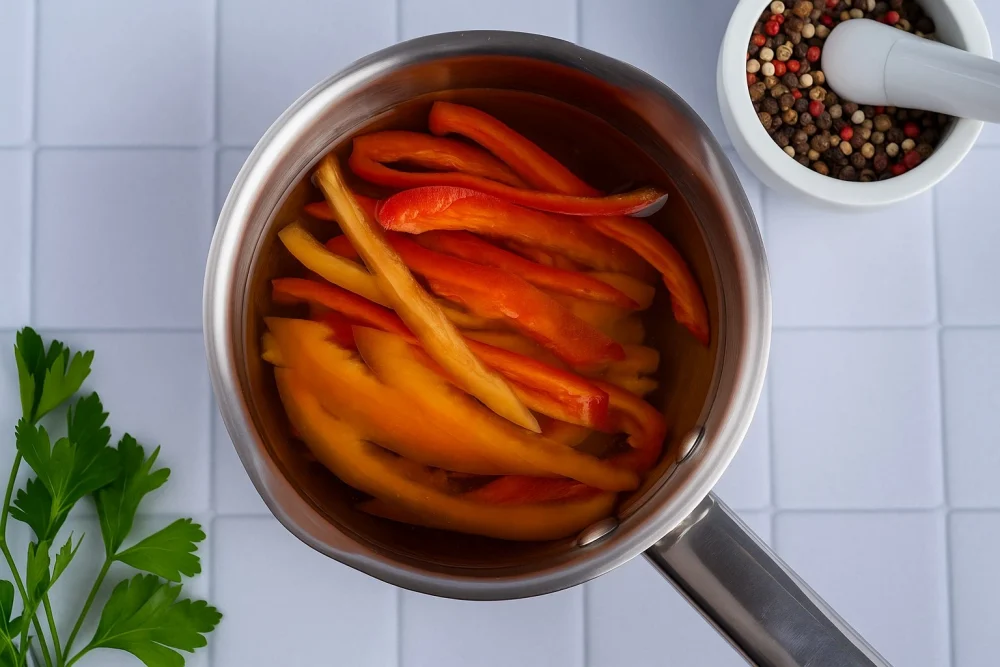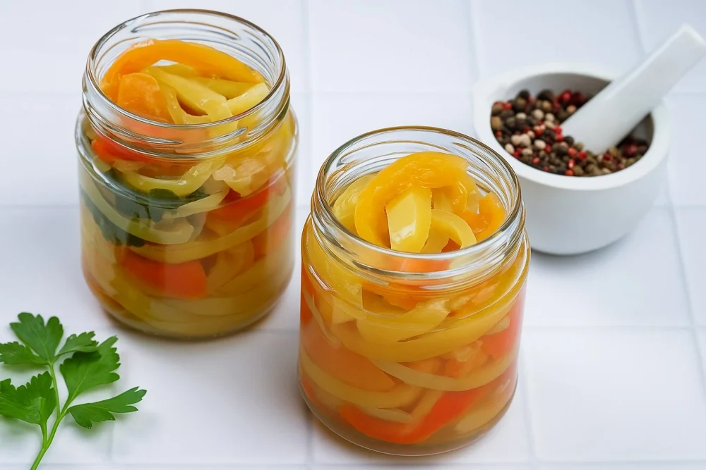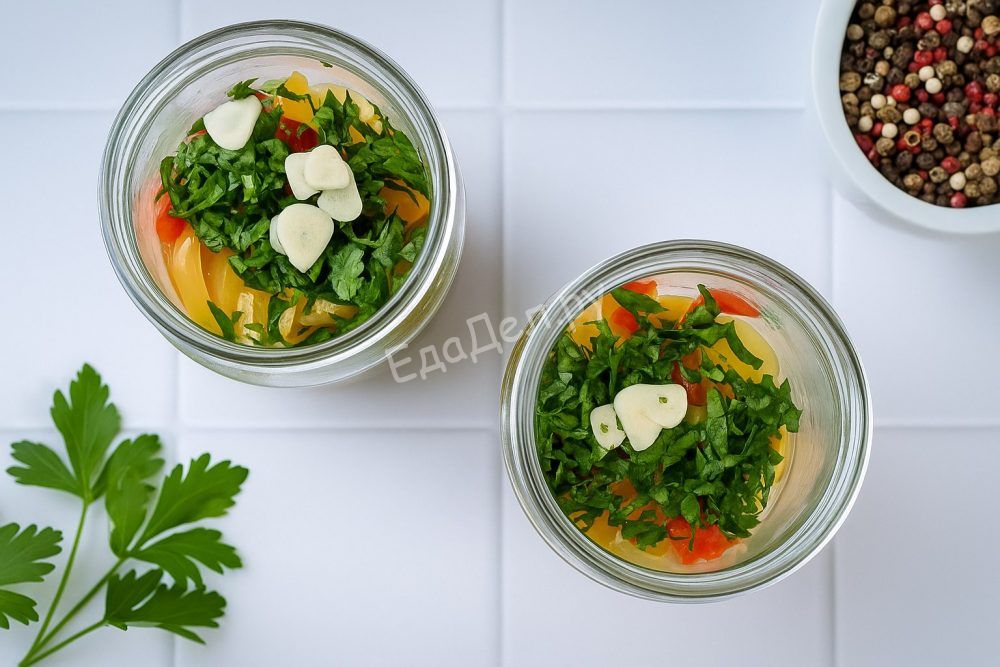 Горячий маринад вновь доведите до кипения и залейте им содержимое банок. Закатайте банки металлическими крышками, переверните вверх дном, укутайте в одеяло или полотенце для классического медленного остывания. После полного охлаждения переставьте банки крышками вверх и перенесите на хранение в прохладное, тёмное место. Заготовка готова — наслаждайтесь зимой ароматом лета!