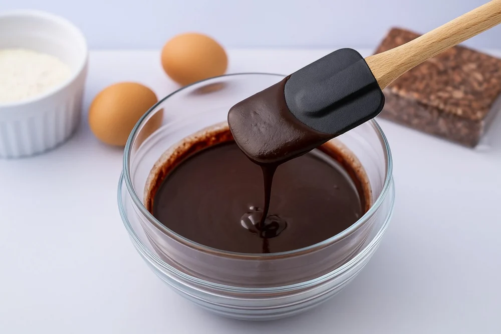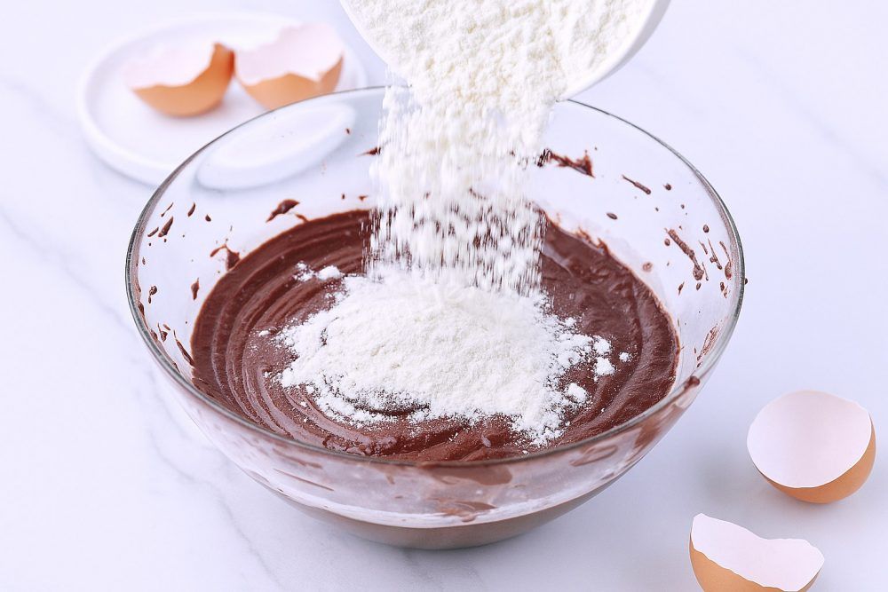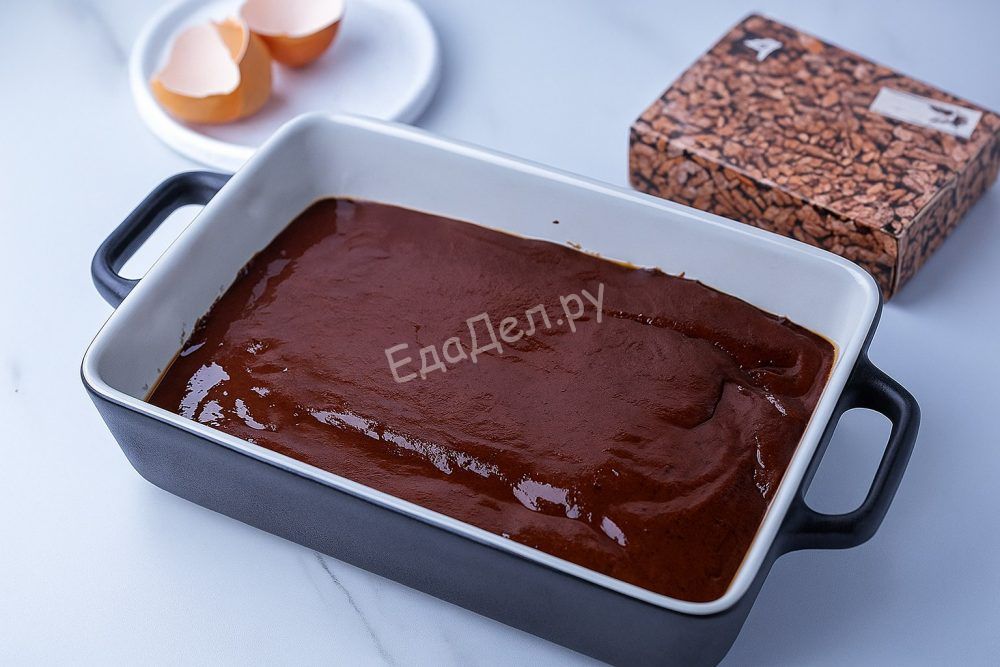 Готовое тесто вылейте в форму для брауни, предварительно выстелив её пергаментной бумагой или смазав маслом, чтобы пирожное легко вынималось после выпечки. Несколько раз постучите формой по столу, чтобы избавиться от воздушных пузырей. Выпекайте брауни в разогретой до 180°C духовке в течение примерно 30 минут, до появления хрустящей корочки и влажного центра.