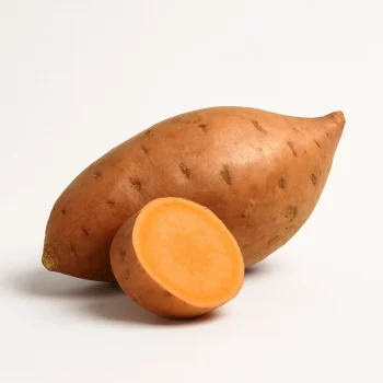Батат — клубнеплодное растение, часто называемое сладким картофелем, отличающееся сытностью, ярким цветом и высоким содержанием питательных веществ. Клубни батата имеют вытянутую форму, плотную кожицу и ярко-оранжевую или бледно-жёлтую мякоть, обладающую сладковатым, мягким вкусом с легкими ореховыми нотками. Продукт богат сложными углеводами, клетчаткой, витаминами группы B, C, а также бета-каротином, который является мощным антиоксидантом и превращается в организме в витамин A, поддерживающий здоровье глаз и кожи. В составе батата содержатся калий, магний и марганец, способствующие правильной работе сердца, сосудов и нервной системы. Несмотря на сладость, батат обладает относительно низким гликемическим индексом, поэтому подходит для питания людей, следящих за уровнем сахара в крови. Клетчатка в батате помогает нормализовать пищеварение, способствует длительному чувству сытости и поддержанию здоровой микрофлоры. Батат универсален в кулинарии: его можно запекать, варить, готовить на пару, тушить, жарить, использовать в супах, гарнирах, пюре, салатах и даже десертах. Благодаря приятной текстуре и сладкому вкусу он часто становится альтернативой картофелю в рецептах здорового питания и диетических блюд. Рекомендуется для вегетарианского и веганского рациона. Регулярное употребление батата помогает укреплению иммунитета, поддержанию энергии и способствует омоложению организма благодаря антиоксидантным свойствам. Продукт легко хранится и долго сохраняет свежесть.