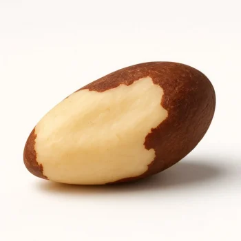 Бразильский орех — это крупное семя дерева бертоллеция высокое, произрастающего в амазонских лесах Южной Америки. Орех имеет характерную твёрдую коричневую скорлупу и вытянутую, мясистую, маслянистую сердцевину кремового цвета. Отличается насыщенным, слегка сладковатым вкусом с ореховым послевкусием и тонким ароматом. Бразильский орех — один из самых богатых природных источников селена, микроэлемента, жизненно необходимого для иммунитета, защиты клеток от оксидативного стресса и нормального функционирования щитовидной железы. В составе ореха высоко содержание природных жиров, главным образом моно- и полиненасыщенных, а также белков, витаминов E, B1, магния, фосфора, кальция, железа, цинка и клетчатки. Орех способствует поддержанию здоровья сердца, улучшает состояние кожи, укрепляет ногти и волосы, нормализует функции нервной системы. Его рекомендуют включать в рацион взрослым для профилактики сердечно-сосудистых заболеваний, улучшения работы мозга и обмена веществ. В кулинарии бразильские орехи используют в качестве сытного перекуса, добавляют в выпечку, десерты, салаты, каши или едят в чистом виде. Орехи хорошо подходят для вегетарианского и диетического питания, отличаясь высокой энергетической ценностью и способностью быстро насыщать организм. Хранить продукт следует при низкой температуре в герметичной упаковке, чтобы избежать прогоркания жиров. Чрезмерное употребление не рекомендуется из-за высокого содержания селена. Бразильский орех — ценный деликатес и натуральный источник жизненной энергии.