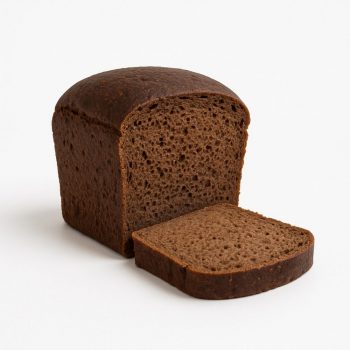 Чёрный хлеб — это один из базовых видов хлебобулочных изделий, традиционно производимый из ржаной муки с добавлением закваски, воды, соли и иногда невысокого процента пшеничной муки. Отличительной чертой чёрного хлеба является его насыщенный вкус с характерной кислинкой и плотной влажной текстурой, обусловленной молочно-кислыми бактериями, участвующими в процессе брожения. Классический чёрный хлеб часто выпекается без сахара и растительных жиров, он содержит значительное количество пищевых волокон, витамины группы B (в особенности B1, B2, B3, B6), а также минералы — железо, магний, калий, марганец и фосфор. Присутствие антиоксидантов и природных ферментов способствует улучшению обмена веществ, нормализации уровня сахара в крови и поддержанию стабильной работы кишечника. Чёрный хлеб широко используется в качестве основы для различных бутербродов, подается к супам, мясу или рыбе, а также часто входит в состав национальных блюд Восточной Европы. Он дольше сохраняет свежесть по сравнению с белым хлебом, имеет насыщенный, немного терпкий аромат, быстро насыщает и легко усваивается благодаря высокому содержанию клетчатки. Употребление чёрного хлеба рекомендуется при активном образе жизни, при восстановлении сил и как элемент сбалансированного питания. Хранить чёрный хлеб следует в сухом прохладном месте, лучше всего в хлебнице или плотно закрытом мешке для предотвращения пересыхания.