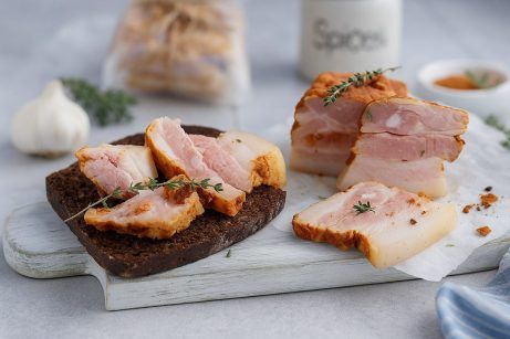 Домашняя грудинка в рассоле приобретает особую сочность и мягкость благодаря длительному маринованию. Это блюдо отлично подходит для нарезки, бутербродов и прекрасно хранится в холодильнике, позволяя ...