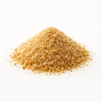 Хлебные крошки — это мелкие сухие частицы, получаемые из измельчённого и высушенного хлеба (чаще всего белого или смешанного). Они обладают светлой или золотистой окраской, нежной текстурой и нейтральным вкусом, что делает их универсальным ингредиентом в кулинарии. Хлебные крошки активно применяются в качестве панировки для мяса, рыбы, птицы, овощей, котлет, зраз и других продуктов, придавая им аппетитную хрустящую корочку и предотвращая высыхание при жарке или запекании. Кроме того, их используют для посыпки запеканок и пудингов, загущения супов, соусов и рагу, а также в классических рецептах вроде фаршировки или приготовления кнелей. В зависимости от применения различают крошки более грубого (панировочные сухари) и очень мелкого (пудра) помола. Хлебные крошки содержат преимущественно сложные углеводы за счет высоко очищенной пшеничной муки, а также белки и минимальное количество жира. Они быстро впитывают влагу и жир, что влияет на консистенцию блюда. Калорийность зависит от сорта используемого хлеба, но обычно она высокая, так как в процессе сушки из продукта практически полностью удаляется вода. Хлебные крошки можно приготовить самостоятельно или приобрести готовыми — натуральными либо с добавками (специи, травы, сыр). Оптимально хранить крошки в герметичной таре при комнатной температуре в сухом месте, чтобы избежать появления влаги и плесени. Благодаря удобству использования и способности улучшать текстуру блюд, хлебные крошки являются одним из самых востребованных компонентов современной кухни.