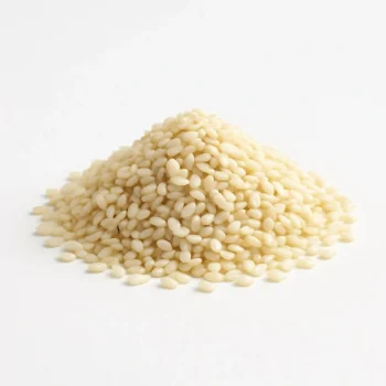 Кунжут белый — это семена травянистого растения Sesamum indicum, которые отличаются нежным ореховым вкусом, хрустящей текстурой и светло-кремовым цветом. Кунжут издавна используется в кулинарии многих культур и ценится за своё богатое содержание питательных веществ и универсальность. Белый кунжут содержит в себе значительное количество растительного белка, а его основная пищевая ценность приходится на жиры — преимущественно полиненасыщенные и мононенасыщенные жирные кислоты, способствующие поддержанию здоровья сердечно-сосудистой системы. В семенах много витаминов группы B (B1, B2, B3, B6, B9), а также витамина Е, который обладает выраженными антиоксидантными свойствами и помогает замедлять процессы старения. Белый кунжут уникален высоким содержанием кальция, магния, цинка, железа, фосфора и меди, благодаря чему поддерживает здоровье костей, зубов, способствует нормализации обмена веществ и укреплению иммунитета. Также семена кунжута содержат растительную клетчатку, которая улучшает пищеварение. В кулинарии белый кунжут используют для посыпки выпечки, добавляют в салаты, первые и вторые блюда, используют для панировки, приготовления соусов и халвы. Благодаря приятному вкусу и высокой питательной ценности кунжут — идеальный выбор для вегетарианцев и сторонников здорового питания. Семена хранятся в плотно закрытой ёмкости в прохладном сухом месте, чтобы избежать прогоркания жиров.