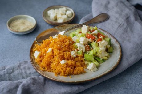 Киноа с овощами и сыром — питательный гарнир на основе ценной южноамериканской крупы. Особенность сочетания — легкость киноа, свежесть овощей и нежная текстура сыра, идеально ...