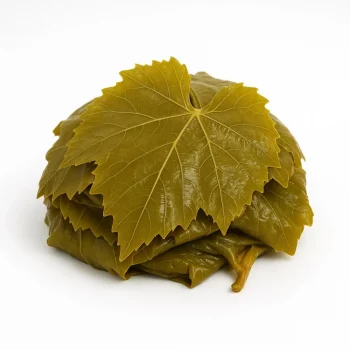 Маринованные виноградные листья — уникальный продукт, широко используемый в кулинарии Средиземноморья, Кавказа и Ближнего Востока. Основой являются молодые, нежные листья винограда, которые собирают в период активного роста, тщательно моют и бланшируют. Затем их помещают в маринад на основе воды, соли, лимонного сока или уксуса, что позволяет сохранить яркий зелёный цвет, эластичность и оригинальный вкус листьев. Готовый продукт обладает легкой кислинкой, нежной текстурой и приятным ароматом свежести. Маринованные виноградные листья — обязательный ингредиент для традиционного блюда долма (голубцы с начинкой из риса, мяса, овощей и пряностей), а также используются в салатах и закусках. Листья богаты клетчаткой, витаминами А, С, К, фолиевой кислотой, а также минералами: магнием, железом, калием и кальцием. Калорийность продукта крайне низкая (35 ккал), а содержание жиров и углеводов минимально. Благодаря содержанию антиоксидантов, маринованные виноградные листья способствуют укреплению иммунитета и нормализации пищеварения, их часто включают в диетический рацион. При хранении в маринаде листья сохраняют питательные свойства длительное время, оставаясь мягкими и удобными для заворачивания начинки. Они придают блюдам изысканную кислинку и оригинальный аромат, отлично сочетаются с бобовыми, мясом, рисом и специями. Перед употреблением листья часто промывают для удаления избытка соли или кислоты. Удобство и универсальность маринованных виноградных листьев делают их популярными как в домашней кухне, так и в ресторанных блюдах.