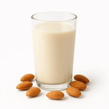 Миндальное молоко — это растительный напиток, приготовленный из измельчённого миндаля и воды, который отличается лёгким ореховым вкусом и нежной консистенцией. В отличие от коровьего молока, миндальное молоко не содержит лактозы, холестерина и насыщенных жиров, что делает его отличной альтернативой для людей с лактозной непереносимостью, аллергиями на белок коровьего молока, а также для тех, кто придерживается веганской или постной диеты. Натуральное миндальное молоко низкокалорийно, содержит небольшой процент жиров (преимущественно полезных ненасыщенных), минимальное количество белка и углеводов. Оно обогащено витаминами Е, В2, а также минералами — кальцием, магнием, фосфором и калием. Витамин Е способствует поддержанию здоровья кожи и иммунитета, а полезные жирные кислоты положительно влияют на сердечно-сосудистую систему. Миндальное молоко широко используется в приготовлении каш, смузи, кофе, чая, выпечки, соусов и десертов, придавая блюдам нежный аромат и мягкий вкус. Напиток легко усваивается, подходит детям, беременным, спортсменам и людям, следящим за своим питанием. Хранить продукт рекомендуется в холодильнике, использовать в течение нескольких дней после открытия упаковки. Покупайте миндальное молоко с минимальным количеством добавок: лучше выбирать варианты без сахара, стабилизаторов и ароматизаторов.
