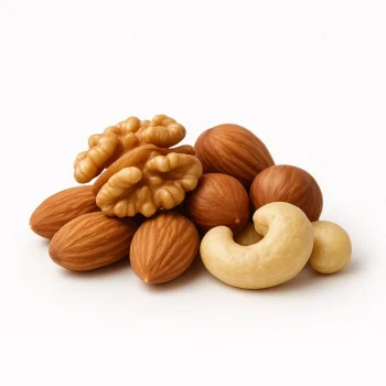 Орехи — это собирательное название плодов различных деревьев и кустарников, отличающихся выраженной твёрдой скорлупой и съедобным ядром. К орехам относятся грецкие, фундук, миндаль, кешью, фисташки, кедровые орехи и многие другие разновидности, каждая из которых обладает уникальным вкусовым профилем и питательным составом. Главная особенность орехов — чрезвычайно высокая питательная ценность: они богаты растительным белком, полезными жирами (преимущественно моно- и полиненасыщенными), сложными углеводами, а также клетчаткой, витаминами (E, группы B), минералами (магний, калий, фосфор, цинк, железо, кальций) и антиоксидантами. Регулярное употребление орехов способствует укреплению сердечно-сосудистой системы, нормализации уровня холестерина и сахара в крови, поддержанию работоспособности мозга и памяти, улучшению состояния кожи и волос. Орехи популярны среди сторонников здорового и сбалансированного питания, а благодаря высокой энергетической ценности идеально подходят как питательный перекус или добавка к кашам, выпечке, десертам, салатам. Несмотря на высокую калорийность, орехи способствуют быстрому насыщению, а их растительные жиры необходимы для полноценной работы организма. Для сохранения свежести и вкуса орехи рекомендуется хранить в герметичной таре в прохладном, защищённом от прямых солнечных лучей месте. Они универсальны в кулинарии: употребляются сырыми, жареными, солёными либо в составе паст, урбечей, начинок и соусов.