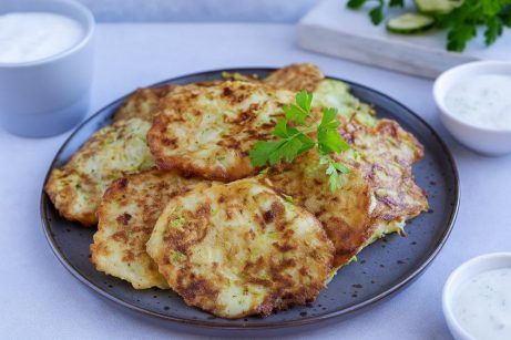 Нежные кабачковые драники с золотистой корочкой готовятся быстро, а освежающий сметанный соус с огурцом и укропом делает их особенно сочными — отличный вариант для лёгкого ...