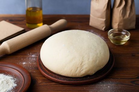 Мягкое и эластичное дрожжевое тесто на кефире: хорошо поднимается, легко раскатывается и подходит для пирогов, булочек и открытых пирогов; из порции выходит около 1,18 кг.
