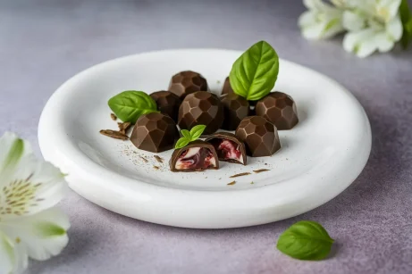 Шоколад — это популярный десертный продукт, получаемый из какао-бобов, сахара, жиров и других ингредиентов, таких как молоко, орехи или эмульгаторы. Существует несколько основных видов шоколада: тёмный, молочный и белый, различающихся пропорцией какао-массы, сахара и присутствием молочных компонентов. В основе любого шоколада лежит какао-масло, которое определяет его гладкую текстуру и характерное таяние при соприкосновении с кожей или во рту. Тёмный шоколад отличается высоким содержанием какао и глубоким, слегка горьким вкусом с яркими ароматическими нотами; молочный — более сладкий и нежный за счёт добавления молочных сухих компонентов; белый шоколад изготавливается только на какао-масле без какао-порошка, имеет сливочный вкус и аромат. Шоколад богат антиоксидантами, особенно полифенолами и флавоноидами, которые положительно влияют на сердечно-сосудистую систему, обладают тонизирующими свойствами, способствуют выработке серотонина и дофамина, улучшая настроение и работоспособность. Шоколад содержит магний, калий, железо, небольшое количество витаминов группы B, а также сахар и жиры, что делает продукт высококалорийным. В кулинарии шоколад универсален: его используют для изготовления конфет, глазури, муссов, тортов, выпечки, напитков, фондана и оформления десертов. Шоколад удобно хранить в прохладном помещении без доступа к солнечному свету и влажности, чтобы сохранить блеск, структуру и свежесть.