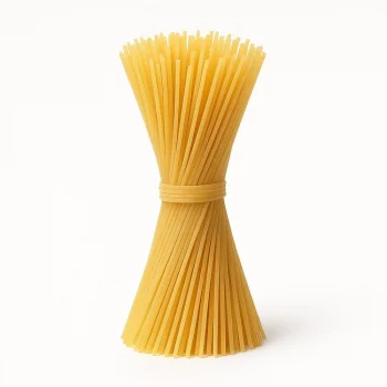 Спагетти — это один из самых популярных видов итальянской пасты, представляющий собой длинные тонкие нити из твёрдых сортов пшеницы. Процесс производства начинается с замешивания теста из высококачественной пшеничной муки и воды, без добавления яиц или других компонентов, после чего тесто экструдируют через специальные формы и сушат до полной готовности. Сухие спагетти обладают бледно-золотистым цветом, гладкой поверхностью и упругой текстурой, а после варки становятся эластичными и слегка пружинящими, идеально сохраняя форму. Классические спагетти ценятся за нейтральный вкус, который позволяет сочетать их с самыми разнообразными соусами, овощами, мясом, рыбой и морепродуктами. В составе спагетти содержатся сложные углеводы, растительный белок, витамины группы B, полезные минералы — железо, магний, фосфор, калий. Благодаря умеренной калорийности и отсутствию жиров они подходят для сбалансированного рациона, быстро насыщают, обеспечивают силы для активной деятельности, а также хорошо усваиваются организмом. Спагетти — основа итальянской кухни, неизменно входит в состав таких популярных блюд, как паста с томатным соусом, болоньезе, карбонара, песто и морепродуктами. Их готовят до состояния аль денте, чтобы сохранить оптимальную текстуру, после чего соединяют с любимыми ингредиентами. Продукт прост в приготовлении, хранении и разнообразии подачи, что делает его идеальным выбором для ежедневного меню.