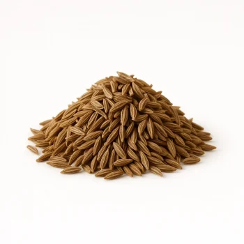 Сушёный тмин — это пряная специя, получаемая из высушенных семян растения тмин обыкновенный (Carum carvi). Семена обладают характерной продолговатой формой и коричневато-серым цветом. После сушки тмин становится особенно ароматным, сохраняя насыщенный, пряный, слегка ореховый вкус с освежающими мятными и анисовыми нотками. Эта специя широко применяется в кухнях мира: ей приправляют мясные и овощные блюда, супы, выпечку, сыры, маринады и колбасы. Тмин помогает раскрыть вкусы других ингредиентов, добавляет блюдам глубину и пикантность, а при добавлении в хлеб придаёт характерный аромат и стимулирует аппетит. Кроме вкусовых достоинств сушёный тмин отличается высокой питательной ценностью. Он богат эфирными маслами, витаминами (B-комплекс, E, C), минералами (железо, кальций, магний, марганец, фосфор, калий), а также пищевыми волокнами. В то же время тмин содержит много белка и сложных углеводов при умеренном содержании жиров. Сушёный тмин способствует пищеварению, обладает противовоспалительными и антисептическими свойствами, помогает при вздутии живота и желудочных коликах. Его используют не только в кулинарии, но и в народной медицине для приготовления настоев и отваров. Для сохранения свежести и аромата тмин желательно хранить в плотно закрытой непрозрачной ёмкости в сухом прохладном месте. Он идеально подходит для блюд с жирным мясом, картофелем, капустой и выпечки. Благодаря насыщенному вкусу достаточно добавить небольшое количество специи для достижения нужного эффекта — слишком большое количество может доминировать.