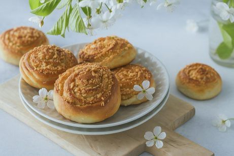 Мягкие и воздушные дрожжевые булочки на молоке поднимаются пышно, остаются нежными внутри и румяными снаружи. Простая масляно-сахарная начинка подчёркивает сливочный вкус теста, а двойная расстойка ...