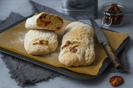 Чиабатта с вялеными томатами — ароматный итальянский хлеб с хрустящей корочкой и мягким, пористым мякишем, обогащённый насыщенным вкусом томатов. Такой хлеб станет ярким акцентом на ...