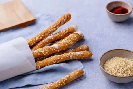 Хрустящие хлебные палочки с кунжутом — идеальная закуска к супу или легкий перекус. Их воздушная текстура достигается за счет дрожжевого теста, а кунжут придает аппетитный ...