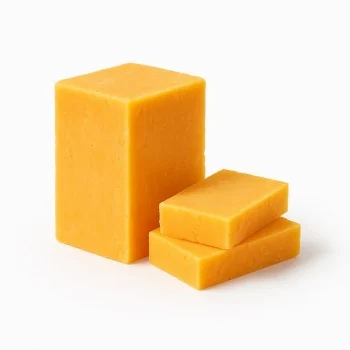 Сыр чеддер — это популярный твёрдый сыр английского происхождения, который известен своим насыщенным вкусом, кремовой текстурой и характерным жёлтым или оранжевым цветом, достигаемым путём добавления аннато при производстве. Процесс изготовления чеддера начинается с пастеризации коровьего молока, после чего добавляются закваска и сычужный фермент, вызывающие свертывание молока и образование сырного сгустка. После нарезки и прессования сыр подвергается процессу, называемому чеддеризацией: сырные ломтики многократно складывают и прессуют для достижения плотной, эластичной структуры. Чеддер может иметь различную степень выдержки — от мягкого молодого до плотного и насыщенного зрелого, который может храниться от нескольких месяцев до нескольких лет. Сыр чеддер отличается высоким содержанием белка и кальция, а также витаминов группы В, витамина А и D, что благоприятно сказывается на здоровье костей, зубов и нервной системы. Благодаря выраженному вкусу и плавкости чеддер идеально подходит для приготовления бутербродов, пиццы, фондю, запеканок, омлетов, соусов и закусок. Его часто используют как самостоятельную закуску или дополнение к сырным тарелкам. Чеддер — универсальный ингредиент, который гармонично сочетается с фруктами, орехами, мясом, овощами и свежей выпечкой. Хранить сыр рекомендуется в холодильнике в специальной упаковке или фольге, чтобы сохранить его свежесть и защитить от пересыхания.