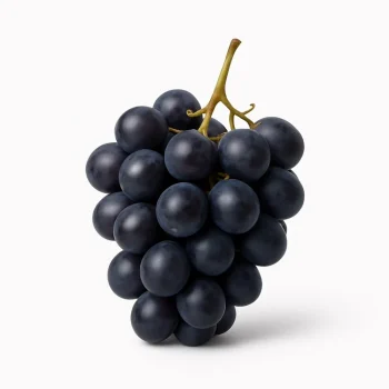Тёмный виноград — это ароматная, сочная и сладкая ягода с насыщенной фиолетовой, бордовой или почти чёрной кожицей, выращиваемая в различных климатических регионах мира. Виноград употребляют как в свежем виде, так и в виде сока, джемов, морсов, используют для приготовления десертов, выпечки, фруктовых салатов и всевозможных напитков. Тёмный виноград особо ценится за высокое содержание антиоксидантов, в первую очередь ресвератрола — вещества, обладающего противовоспалительными и общеукрепляющими свойствами, способствующего профилактике сердечно-сосудистых заболеваний и поддержанию эластичности сосудов. Ягоды богаты витаминами группы B, а также витаминами C, K и РР, железом, калием, магнием и другими минеральными элементами, необходимыми для нормального обмена веществ, поддержания иммунитета и правильной работы нервной системы. Присутствие фруктозы и глюкозы обеспечивает характерную естественную сладость, при этом свежий виноград низкокалориен и хорошо подходит для лёгких перекусов и диетического питания. Кожица и косточки тёмного винограда содержат пищевые волокна, полезные для пищеварения, а также дополнительные полифенолы. Виноград помогает уменьшить усталость, улучшить кроветворение, укрепить сосуды и повысить общий тонус организма. При выборе тёмного винограда стоит обращать внимание на целостность ягод и отсутствие признаков плесени. Лучшие вкусовые качества проявляются в сезон, когда ягоды полностью созрели.