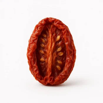 Вяленые томаты — это популярный деликатес, приготовленный из спелых помидоров, высушенных при низкой температуре на солнце или в специальных сушильных камерах для сохранения их аромата, вкуса и текстуры. В процессе вяления томаты теряют значительное количество влаги, что делает их плотными, насыщенными по цвету и вкусу, с характерным сладковато-кисловатым, чуть терпким привкусом. Этот продукт отличается высокой концентрацией полезных веществ: вяленые томаты богаты антиоксидантами, включая ликопин, витамин C, витамин A и витамины группы B, а также минеральными элементами — калием, магнием, железом. Вяленые томаты часто замачивают в оливковом масле с добавлением трав, чеснока и специй, что дополнительно усиливает их аромат и гастрономическую ценность. Они широко используются в средиземноморской кухне для приготовления салатов, пасты, пиццы, закусок, соусов, выпечки и мясных блюд, прекрасно сочетаются с сыром, орехами, зеленью, морепродуктами и злаками. Благодаря низкой калорийности вяленые томаты подходят для диетического питания, их можно добавлять в рацион для усиления вкуса без лишних жиров. Вяленые томаты имеют длительный срок хранения, при условии, что они помещены в герметичную банку и покрыты маслом, что позволяет наслаждаться ими круглый год. Продукт легко усваивается, обладает насыщенным вкусом и ароматом, подчеркивающим и обогащающим блюда. Вяленые томаты — универсальный ингредиент, который делает любое блюдо изысканным и пикантным.