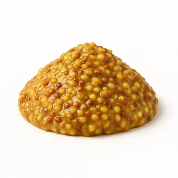 Зернистая горчица — это популярная приправа, изготавливаемая из целых или дробленых горчичных семян, замоченных в уксусе, вине, воде или рассоле с добавлением ароматных специй и соли. Отличается характерной текстурой: крупные зерна приятно чувствуются во рту, даря насыщенный, слегка острый вкус с выраженной кислинкой и пряными нотами. Благодаря целостности семян, зернистая горчица обладает мягким, менее едким вкусом по сравнению с классической гладкой горчицей, а ее острота раскрывается постепенно. Этот продукт используется как самостоятельная приправа, для маринадов, соусов, салатов, мясных и рыбных блюд, а также как дополнение к сырным и колбасным нарезкам. В составе зернистой горчицы присутствуют эфирные масла, антиоксиданты, витамины группы B, E, а также полезные минералы — магний, кальций, железо. Она способствует пищеварению, улучшает аппетит, обладает лёгким антисептическим действием и нередко применяется для пикантного вкуса в здоровом питании. Добавление зернистой горчицы к блюдам не только обогащает их вкус, но также придаёт текстурное разнообразие и яркость, делая даже простой гарнир более интересным и сбалансированным. Продукт отлично хранится при правильных условиях, не теряя вкусовых характеристик.