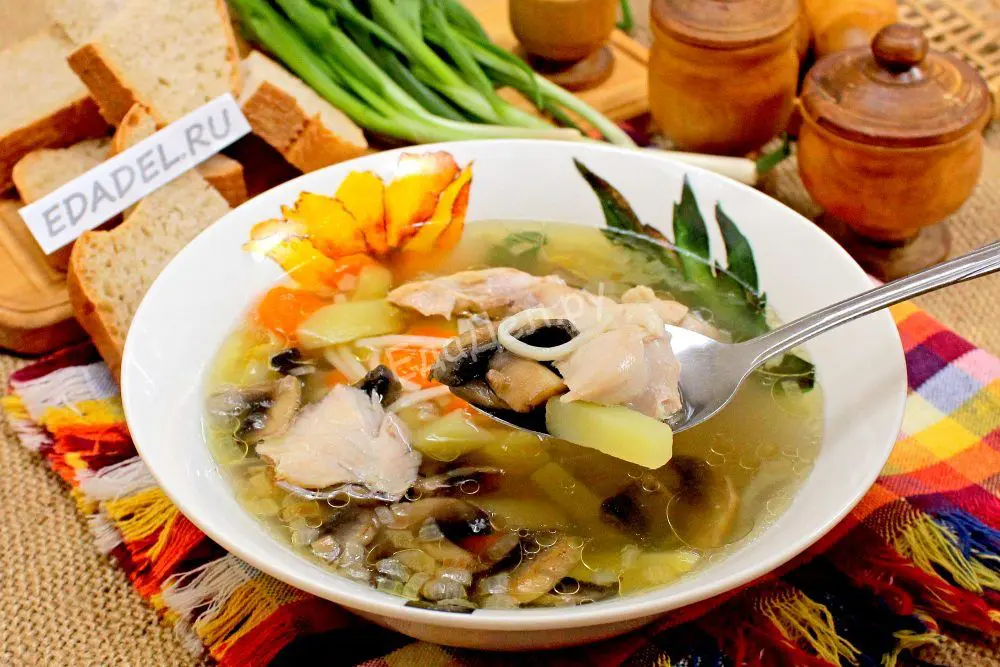 Куриное мясо заливаем холодной водой и варим на тихом огне минут 25-30. Поднявшуюся после закипания пену собираем. Чтобы не терять время, к почти готовой курице добавляем картофель – чем лучше он разварится, тем вкуснее и наваристее будет суп. Нарезка на ваше усмотрение – кубиками, соломкой, ломтиками. После закипания варим еще минут десять и вынимаем куски курицы. Солим суп по вкусу.