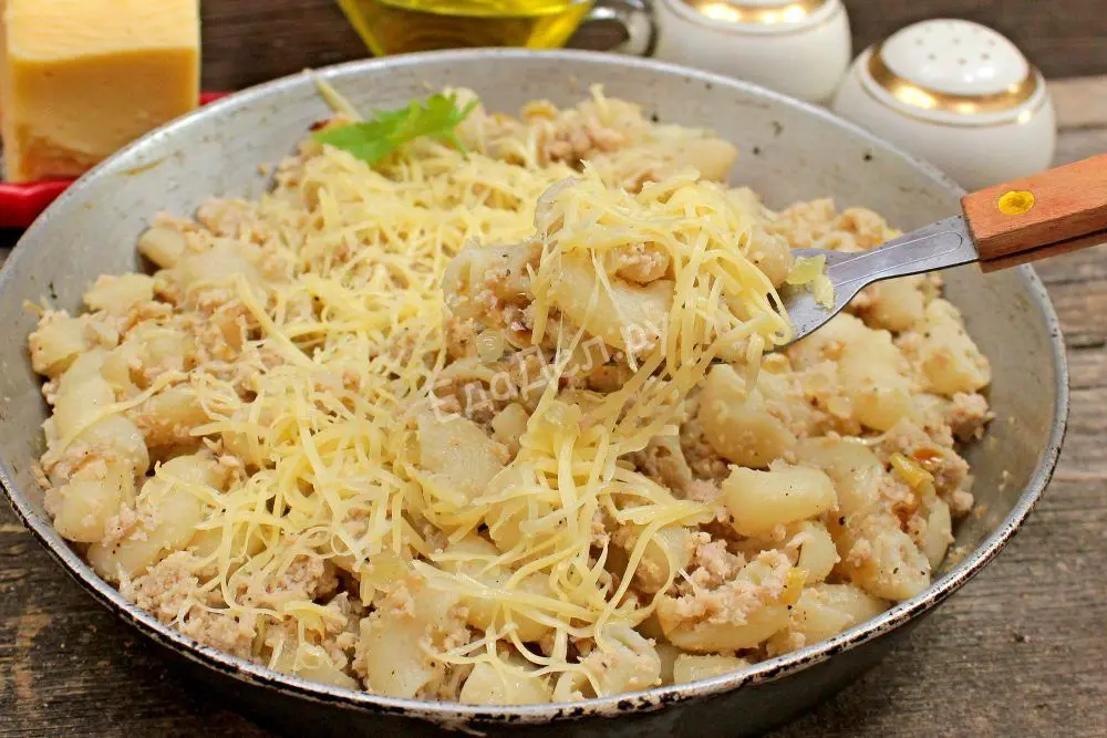 Одновременно отвариваем макароны. Наливаем примерно 600-700 мл. воды в кастрюлю, подсаливаем и после закипания высыпаем макароны. Лучше брать некрупные, полые внутри, чтобы фарш «зацепился» сверху и попал внутрь макарон. Варим 8-10 минут после закипания или соответственно инструкции на упаковке. Воду сцеживаем, макароны откидываем на дуршлаг.