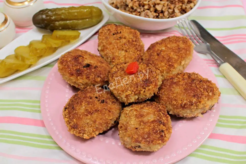 Аккуратно поддеваем двумя вилками или лопаточкой. Переворачиваем. Вторую сторону обжариваем столько же или немного меньше, до румяной корочки. Готовые котлеты снимаем на бумажное полотенце. Потом перекладываем в глубокую миску и накрываем. Или кладем в форму для запекания, ставим в горячую духовку (температура 180 градусов), прогреваем 5-7 минут.