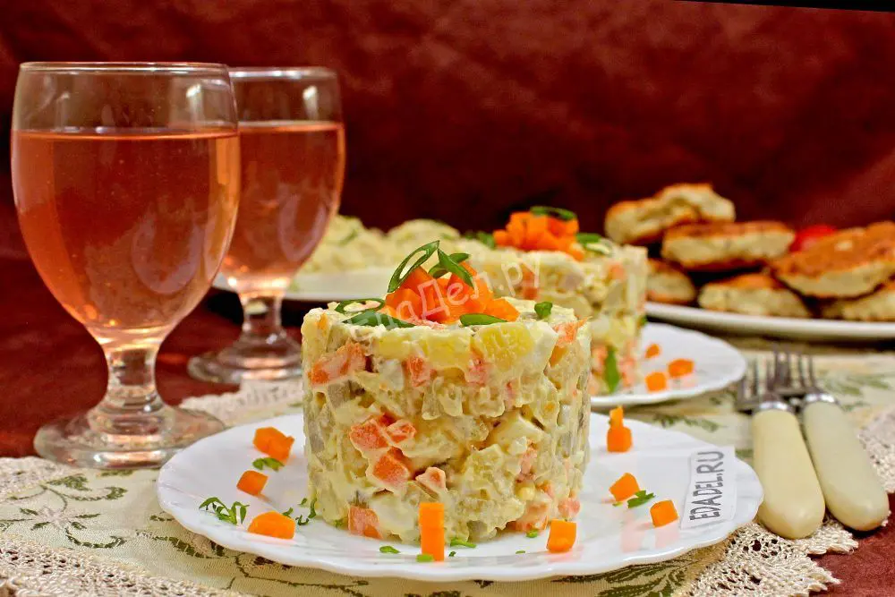 По способу приготовления «Московский» ничем не отличается от современной версии салата «Оливье». Нужно отварить овощи и яйца – это желательно сделать заранее, чтобы продукты успели остыть. Картошку и морковь лучше сварить на пару – будет и полезнее, и вкуснее. Яйца отварить вкрутую. Курицу можно запечь, сварить или обжарить – дело вкуса и возможностей.
