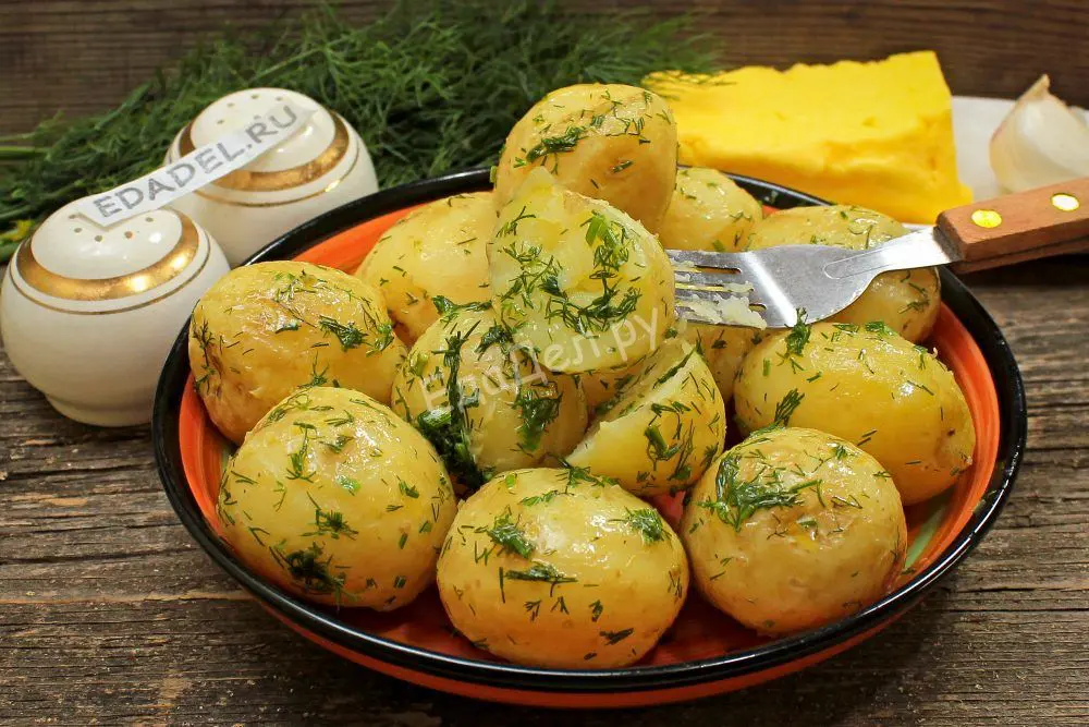 Наливаем в кастрюлю примерно литр воды или немного больше. Ставим на сильный огонь. Пока вода закипает, чистим картошку. Срезать тонкую прозрачную кожицу нет необходимости, просто скоблим клубни ножом. После такой чистки картошка станет гладкой и ровной. Споласкиваем под проточной водой от остатков кожицы.