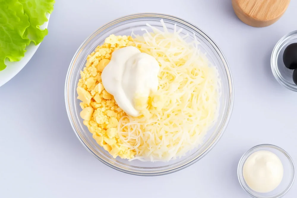 Когда будете солить блюдо, учитывайте, что в составе соленый майонез.