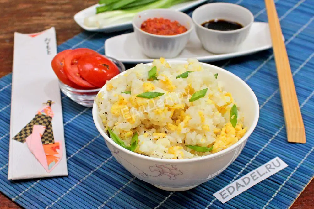 Рисовую крупу промываем несколько раз, пока вода не будет сливаться почти прозрачной. Нужно максимально вымыть крахмал, тогда рис не будет слипаться в единый комок. Перекладываем крупу в казанок. Заливаем водой на 3-4 см. выше уровня риса. Варим до готовности, потом высыпаем в сковороду. Если есть вареный рис, то сразу перекладываем его на горячую сковороду с маслом. На тихом огне прогреваем.